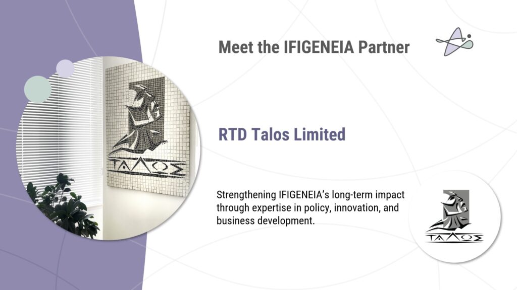 With strong experience at the intersection of policy, innovation, and business development, RTD Talos contributes essential expertise to strengthening the long-term impact and sustainability of the IFIGENEIA project.